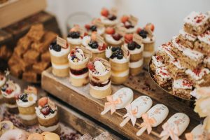 Whether it be a dessert table or individual dessert table platters, we can style it around your wedding. Including flowers, fruits and any unique points that make your special day. During a consultation we can go over an ideas and inspirations you have also we have portfolios full of ideas if you need a little help deciding.